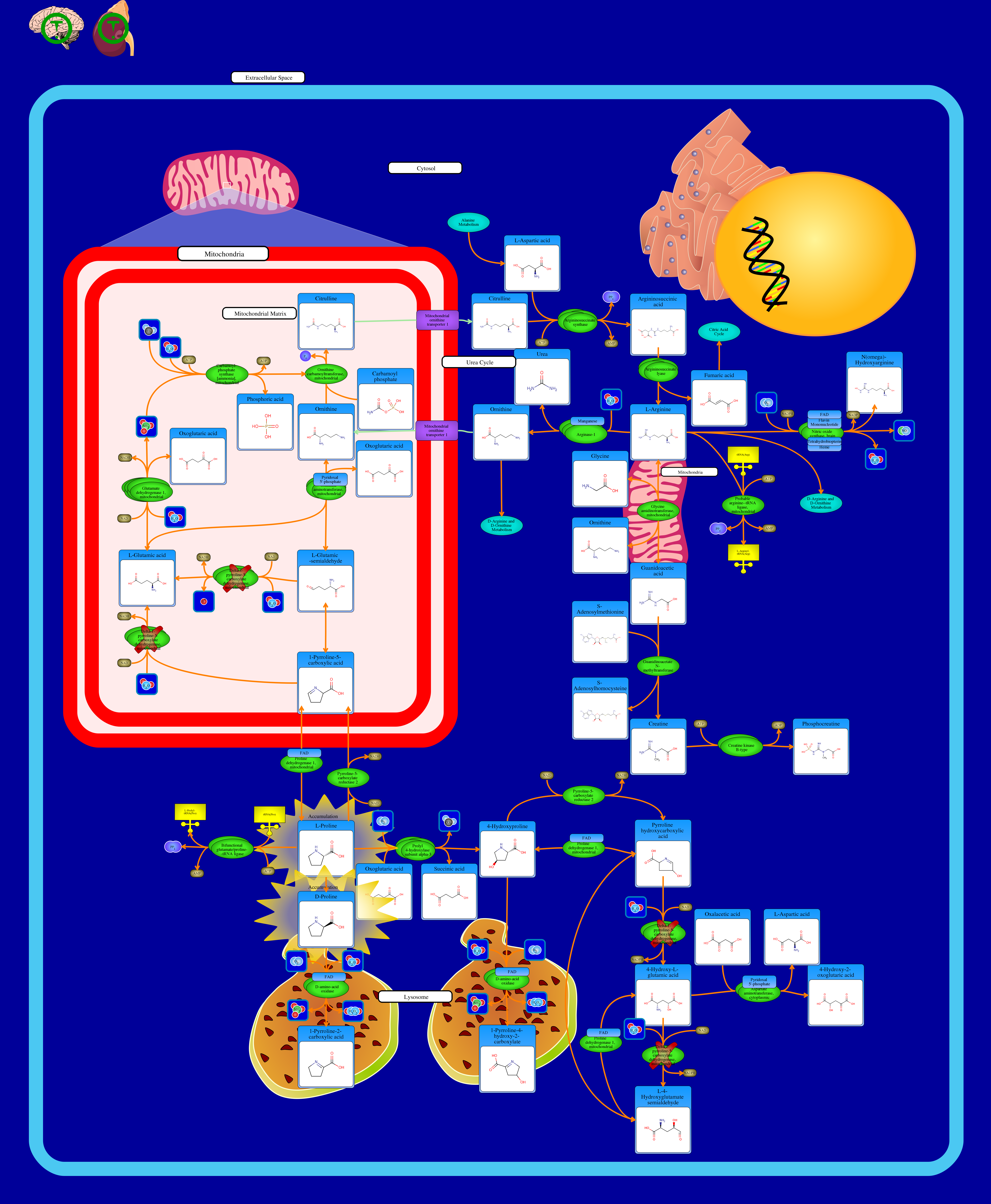 Enter relative concentration values (without units). Elements will be highlighted in a color gradient where red = lowest concentration and green = highest concentration. For the best results, view the pathway in Black and White.