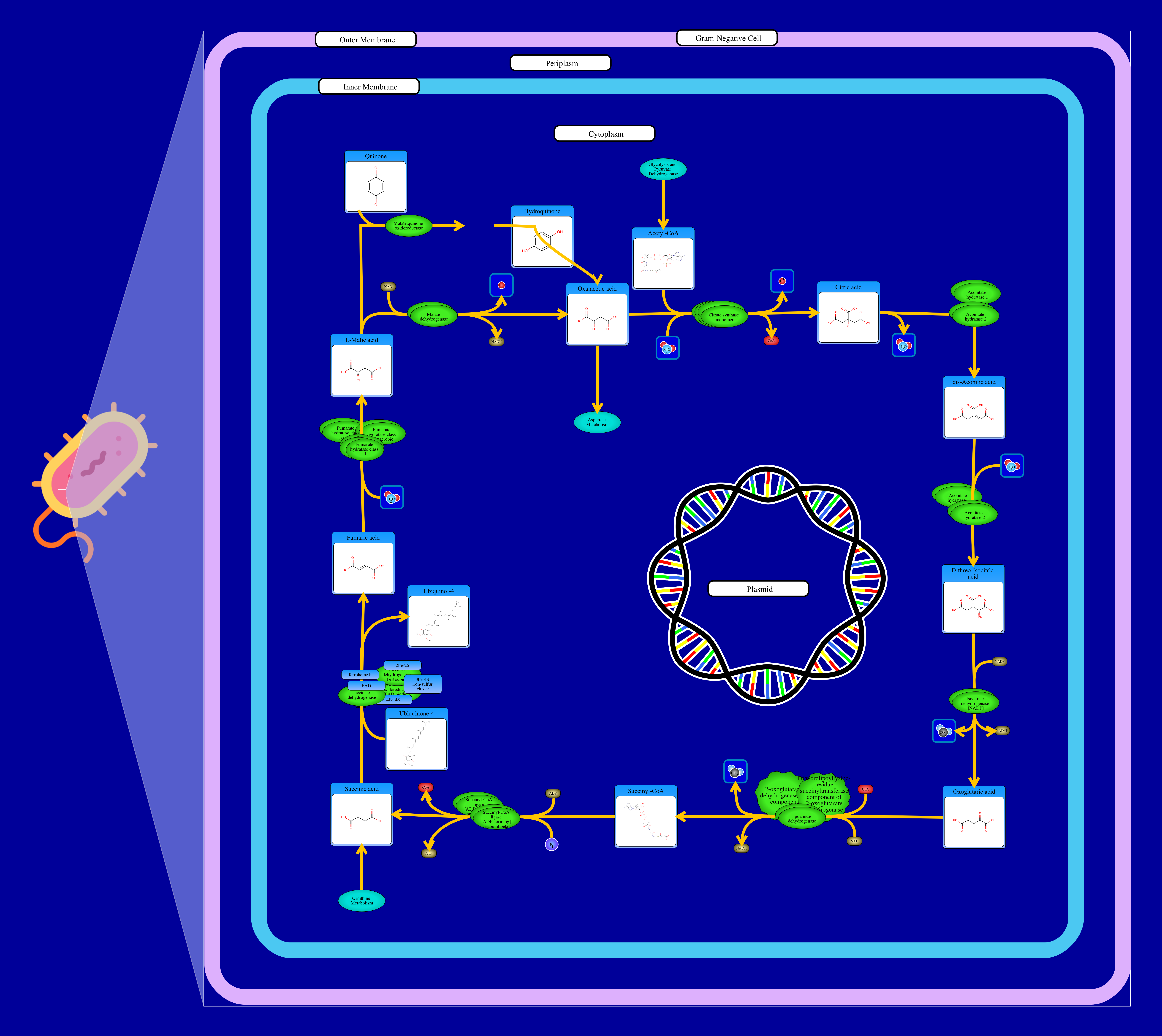 Enter relative concentration values (without units). Elements will be highlighted in a color gradient where red = lowest concentration and green = highest concentration. For the best results, view the pathway in Black and White.