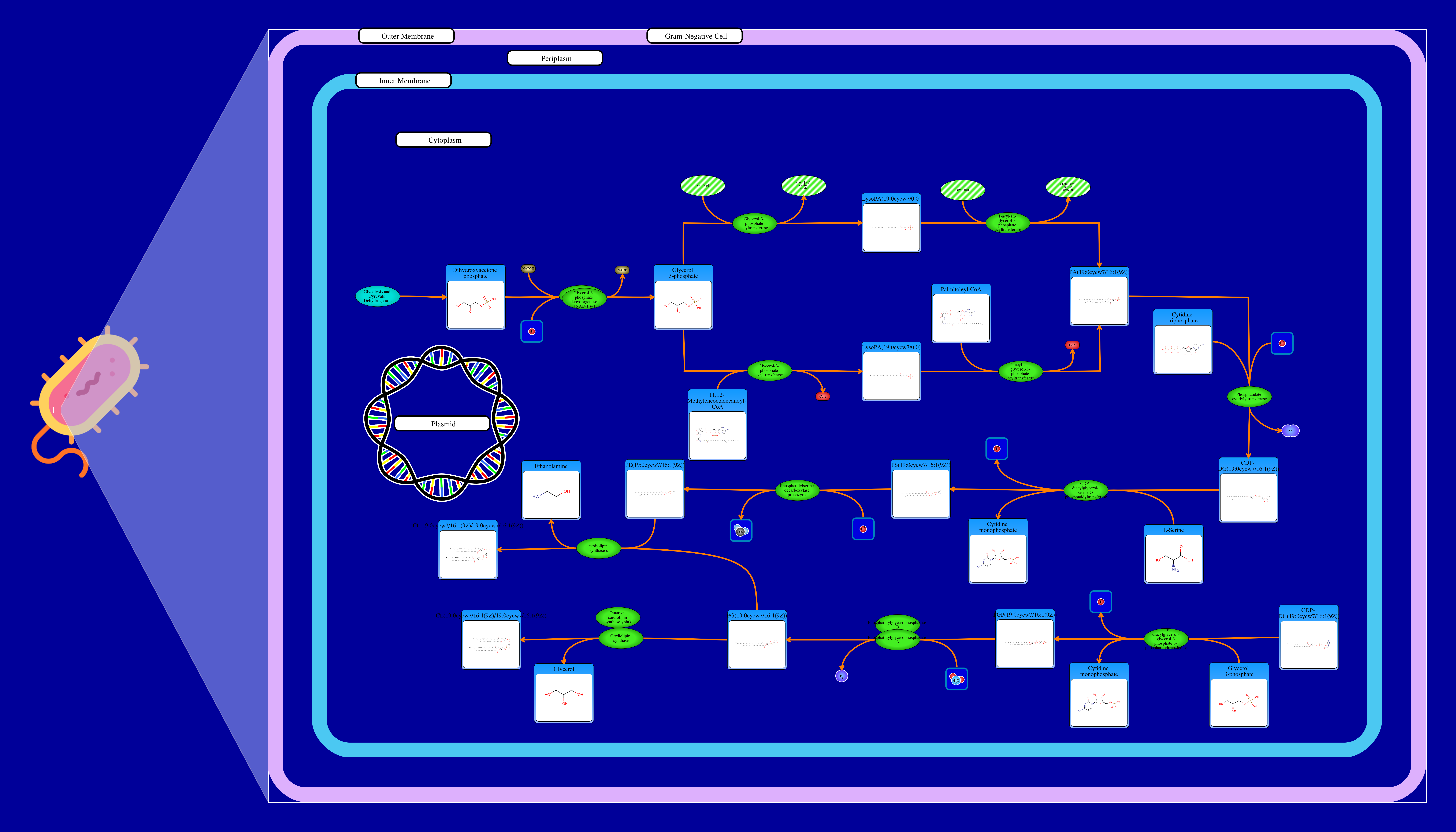 Phospholipids are membrane components in E. coli. The major phospholipids of E. coli are phosphatidylethanolamine, phosphatidylglycerol, and cardiolipin. All phospholipids contain sn-glycerol-3-phosphate esterified with fatty acids at the sn-1 and sn-2 positions. The reaction starts from a glycerone phosphate (dihydroxyacetone phosphate) produced in glycolysis. The glycerone phosphate is transformed into an sn-glycerol 3-phosphate (glycerol 3 phosphate) by NADPH-driven glycerol-3-phosphate dehydrogenase. sn-Glycerol 3-phosphate is transformed to a 1-acyl-sn-glycerol 3-phosphate (lysophosphatidic acid). This can be achieved by an sn-glycerol-3-phosphate acyltransferase that interacts either with a long-chain acyl-CoA or with an acyl-[acp]. The 1-acyl-sn-glycerol 3-phosphate is transformed into a 1,2-diacyl-sn-glycerol 3-phosphate (phosphatidic acid) through a 1-acylglycerol-3-phosphate O-acyltransferase. This compound is then converted into a CPD-diacylglycerol through a CTP phosphatidate cytididyltransferase. CPD-diacylglycerol can be transformed either into an L-1-phosphatidylserine or an L-1-phosphatidylglycerol-phosphate through a phosphatidylserine synthase or a phosphatidylglycerophosphate synthase, respectively. The L-1-phosphatidylserine transforms into L-1-phosphatidylethanolamine through a phosphatidylserine decarboxylase. On the other hand, L-1-phosphatidylglycerol-phosphate gets transformed into an L-1-phosphatidyl-glycerol through a phosphatidylglycerophosphatase. These 2 products combine to produce a cardiolipin and an ethanolamine. The L-1 phosphatidyl-glycerol can also interact with cardiolipin synthase resulting in a glycerol and a cardiolipin.