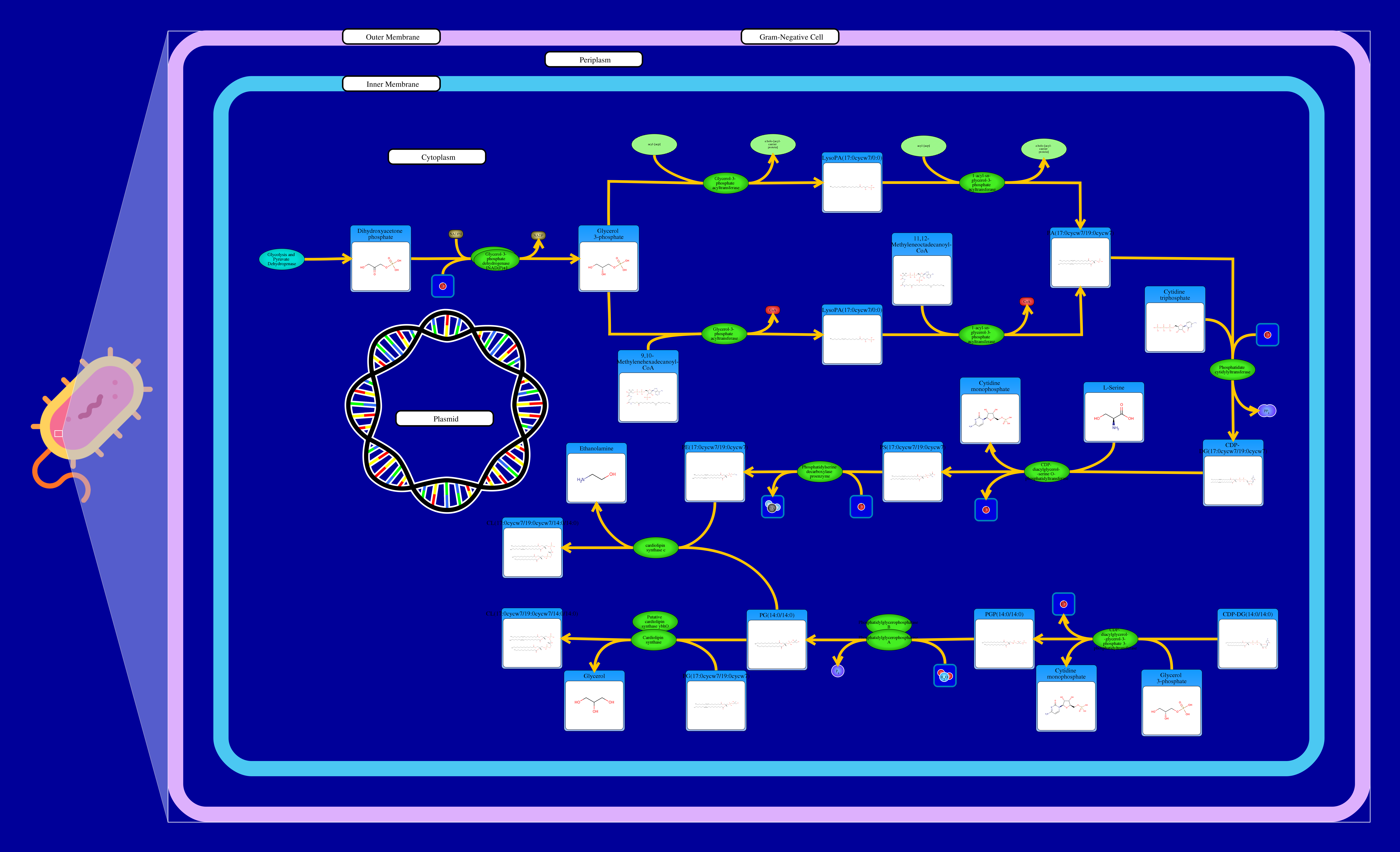 Phospholipids are membrane components in E. coli. The major phospholipids of E. coli are phosphatidylethanolamine, phosphatidylglycerol, and cardiolipin. All phospholipids contain sn-glycerol-3-phosphate esterified with fatty acids at the sn-1 and sn-2 positions. The reaction starts from a glycerone phosphate (dihydroxyacetone phosphate) produced in glycolysis. The glycerone phosphate is transformed into an sn-glycerol 3-phosphate (glycerol 3 phosphate) by NADPH-driven glycerol-3-phosphate dehydrogenase. sn-Glycerol 3-phosphate is transformed to a 1-acyl-sn-glycerol 3-phosphate (lysophosphatidic acid). This can be achieved by an sn-glycerol-3-phosphate acyltransferase that interacts either with a long-chain acyl-CoA or with an acyl-[acp]. The 1-acyl-sn-glycerol 3-phosphate is transformed into a 1,2-diacyl-sn-glycerol 3-phosphate (phosphatidic acid) through a 1-acylglycerol-3-phosphate O-acyltransferase. This compound is then converted into a CPD-diacylglycerol through a CTP phosphatidate cytididyltransferase. CPD-diacylglycerol can be transformed either into an L-1-phosphatidylserine or an L-1-phosphatidylglycerol-phosphate through a phosphatidylserine synthase or a phosphatidylglycerophosphate synthase, respectively. The L-1-phosphatidylserine transforms into L-1-phosphatidylethanolamine through a phosphatidylserine decarboxylase. On the other hand, L-1-phosphatidylglycerol-phosphate gets transformed into an L-1-phosphatidyl-glycerol through a phosphatidylglycerophosphatase. These 2 products combine to produce a cardiolipin and an ethanolamine. The L-1 phosphatidyl-glycerol can also interact with cardiolipin synthase resulting in a glycerol and a cardiolipin.