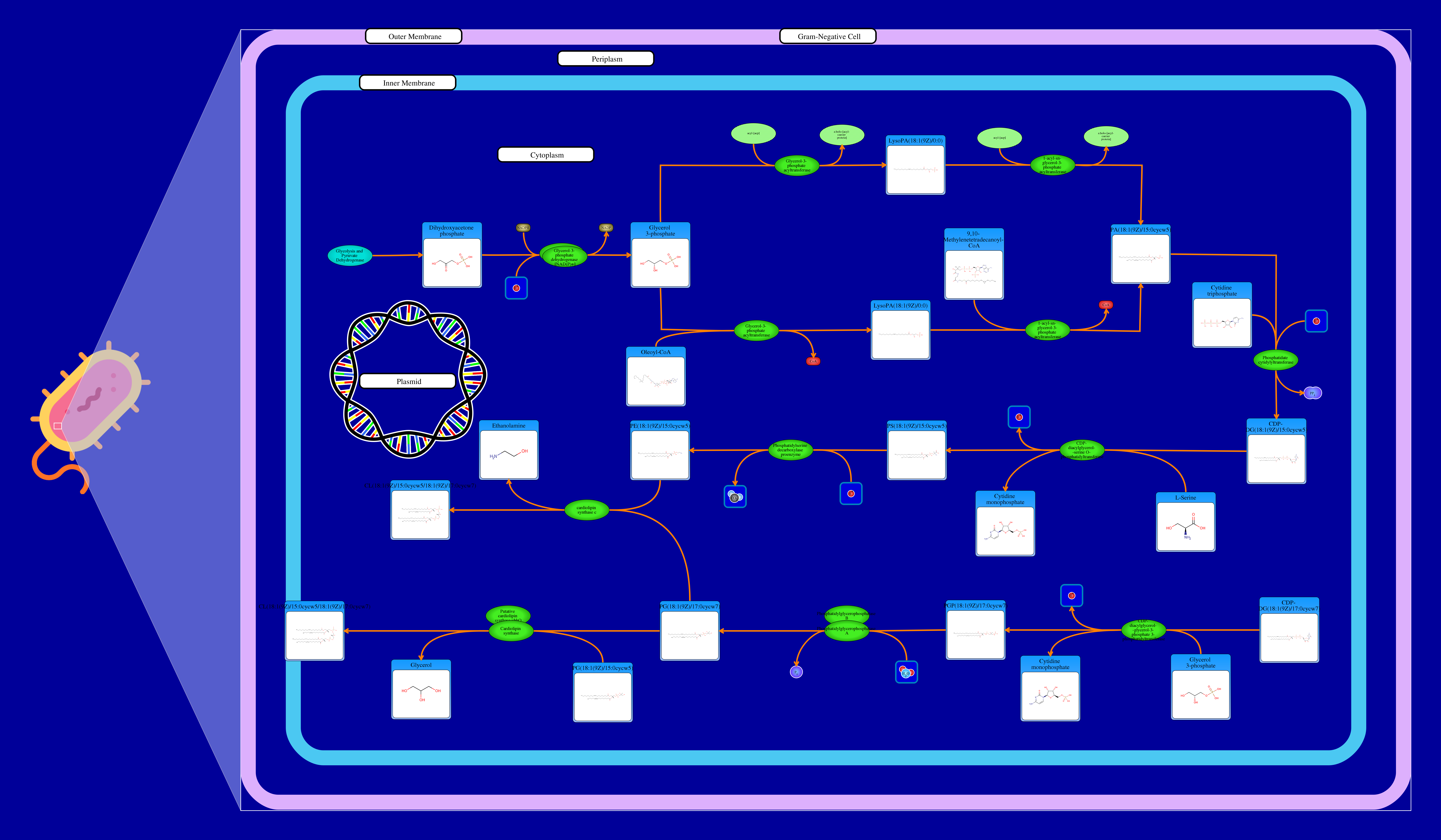 Phospholipids are membrane components in E. coli. The major phospholipids of E. coli are phosphatidylethanolamine, phosphatidylglycerol, and cardiolipin. All phospholipids contain sn-glycerol-3-phosphate esterified with fatty acids at the sn-1 and sn-2 positions. The reaction starts from a glycerone phosphate (dihydroxyacetone phosphate) produced in glycolysis. The glycerone phosphate is transformed into an sn-glycerol 3-phosphate (glycerol 3 phosphate) by NADPH-driven glycerol-3-phosphate dehydrogenase. sn-Glycerol 3-phosphate is transformed to a 1-acyl-sn-glycerol 3-phosphate (lysophosphatidic acid). This can be achieved by an sn-glycerol-3-phosphate acyltransferase that interacts either with a long-chain acyl-CoA or with an acyl-[acp]. The 1-acyl-sn-glycerol 3-phosphate is transformed into a 1,2-diacyl-sn-glycerol 3-phosphate (phosphatidic acid) through a 1-acylglycerol-3-phosphate O-acyltransferase. This compound is then converted into a CPD-diacylglycerol through a CTP phosphatidate cytididyltransferase. CPD-diacylglycerol can be transformed either into an L-1-phosphatidylserine or an L-1-phosphatidylglycerol-phosphate through a phosphatidylserine synthase or a phosphatidylglycerophosphate synthase, respectively. The L-1-phosphatidylserine transforms into L-1-phosphatidylethanolamine through a phosphatidylserine decarboxylase. On the other hand, L-1-phosphatidylglycerol-phosphate gets transformed into an L-1-phosphatidyl-glycerol through a phosphatidylglycerophosphatase. These 2 products combine to produce a cardiolipin and an ethanolamine. The L-1 phosphatidyl-glycerol can also interact with cardiolipin synthase resulting in a glycerol and a cardiolipin.