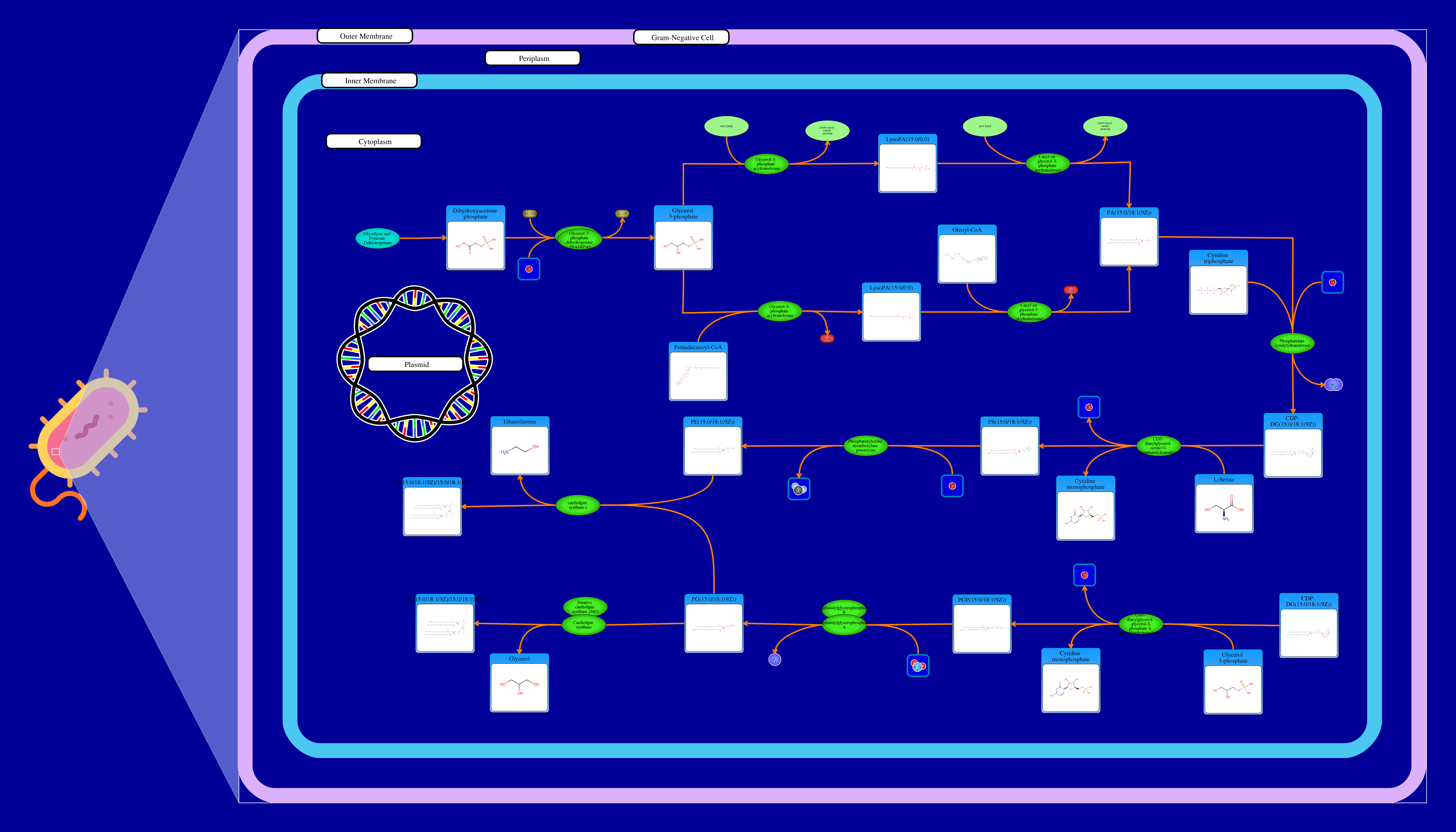 Phospholipids are membrane components in E. coli. The major phospholipids of E. coli are phosphatidylethanolamine, phosphatidylglycerol, and cardiolipin. All phospholipids contain sn-glycerol-3-phosphate esterified with fatty acids at the sn-1 and sn-2 positions. The reaction starts from a glycerone phosphate (dihydroxyacetone phosphate) produced in glycolysis. The glycerone phosphate is transformed into an sn-glycerol 3-phosphate (glycerol 3 phosphate) by NADPH-driven glycerol-3-phosphate dehydrogenase. sn-Glycerol 3-phosphate is transformed to a 1-acyl-sn-glycerol 3-phosphate (lysophosphatidic acid). This can be achieved by an sn-glycerol-3-phosphate acyltransferase that interacts either with a long-chain acyl-CoA or with an acyl-[acp]. The 1-acyl-sn-glycerol 3-phosphate is transformed into a 1,2-diacyl-sn-glycerol 3-phosphate (phosphatidic acid) through a 1-acylglycerol-3-phosphate O-acyltransferase. This compound is then converted into a CPD-diacylglycerol through a CTP phosphatidate cytididyltransferase. CPD-diacylglycerol can be transformed either into an L-1-phosphatidylserine or an L-1-phosphatidylglycerol-phosphate through a phosphatidylserine synthase or a phosphatidylglycerophosphate synthase, respectively. The L-1-phosphatidylserine transforms into L-1-phosphatidylethanolamine through a phosphatidylserine decarboxylase. On the other hand, L-1-phosphatidylglycerol-phosphate gets transformed into an L-1-phosphatidyl-glycerol through a phosphatidylglycerophosphatase. These 2 products combine to produce a cardiolipin and an ethanolamine. The L-1 phosphatidyl-glycerol can also interact with cardiolipin synthase resulting in a glycerol and a cardiolipin.