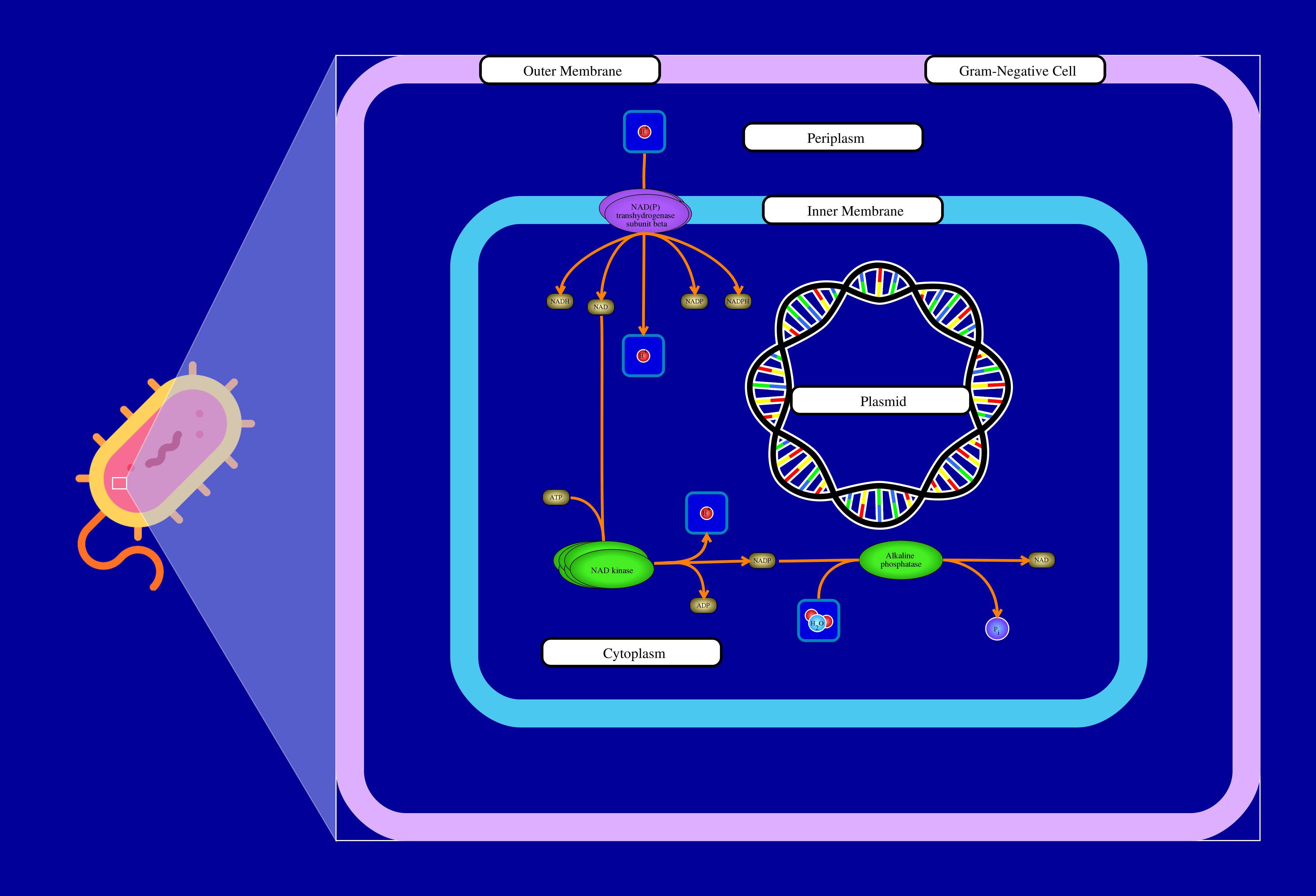 NAD kinase is required for converting NAD to NADP in various organisms such as groups of archaea, eubacteria and eukaryotes. For example, NAD kinase has shown its important role for the growth in Salmonella enterica and the importance in E.coli. NADP can be converted back to NAD via facilitation of alkaline phosphatase with water (hydroxylation).