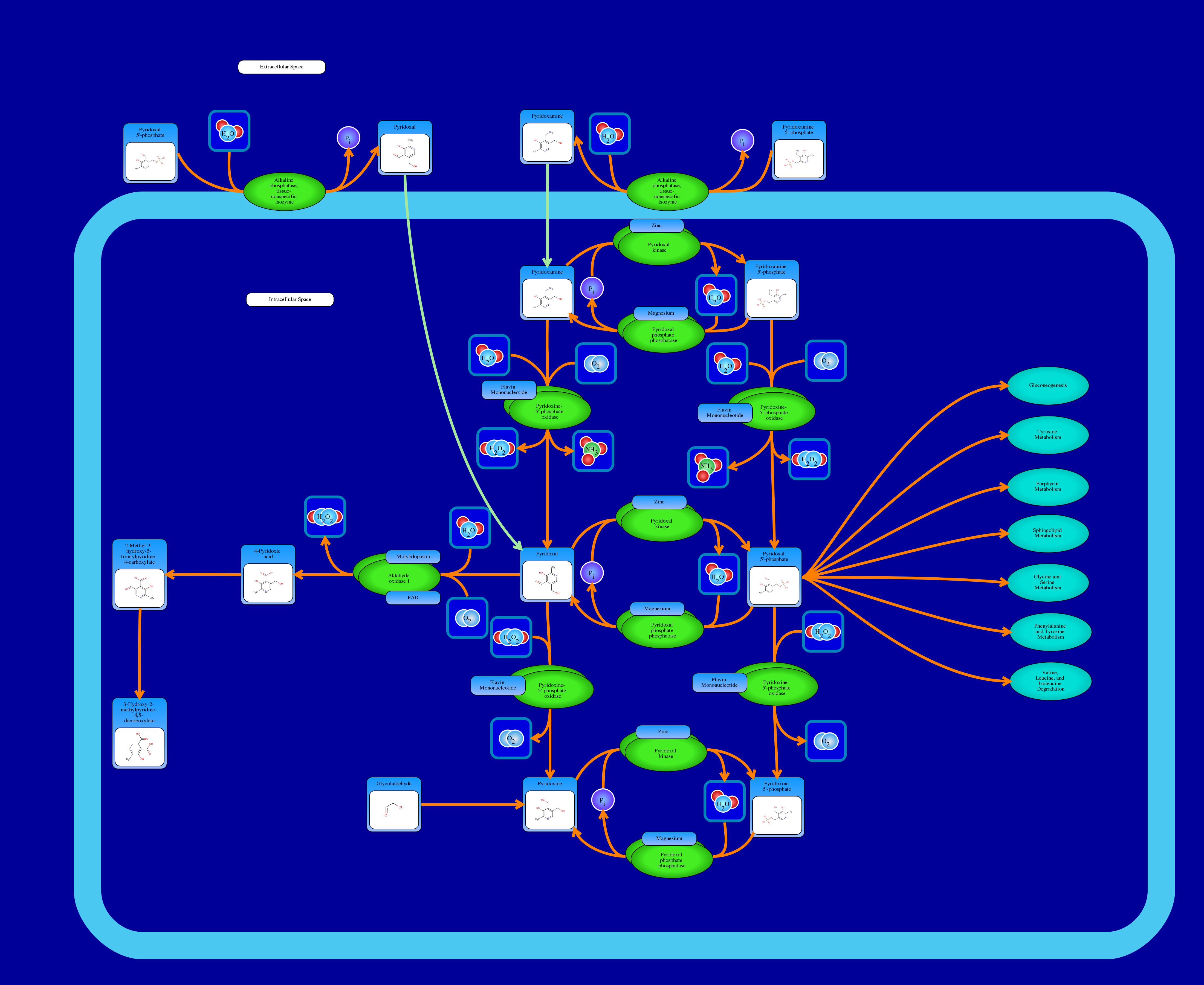 Enter relative concentration values (without units). Elements will be highlighted in a color gradient where red = lowest concentration and green = highest concentration. For the best results, view the pathway in Black and White.
