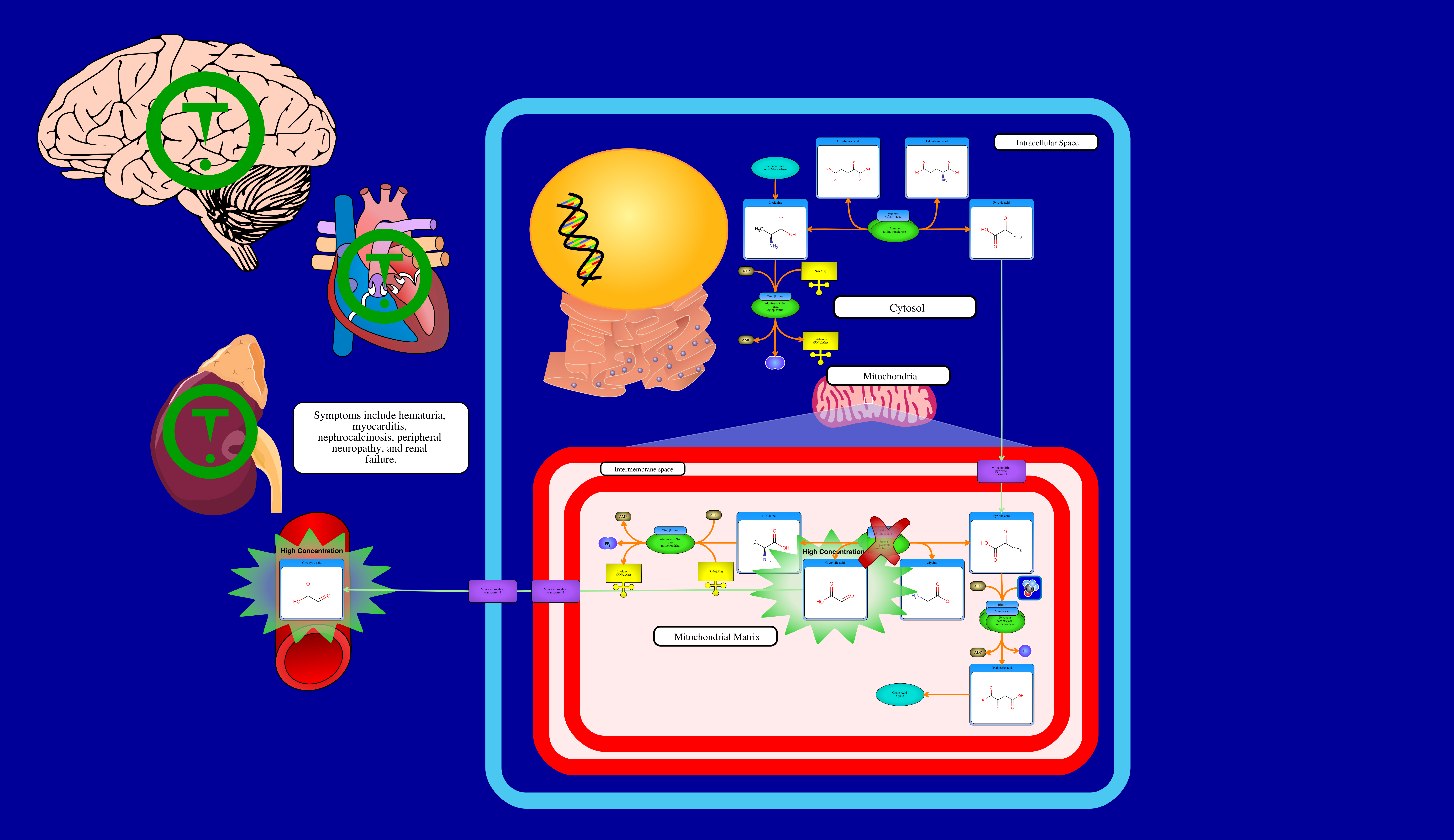 Type I primary hyperoxaluria (Glycolicaciduria) is caused by mutation in the gene encoding alanine-glyoxylate aminotransferase (AGXT). AGXT normally catalyzes the reaction from L-serine and pyruvate to 3-hydroxypyruvate and L-alanine and the reaction from L-alanine and glyoxylate to pyruvate and glycine. A defect in AGXT results in accumulation of glycolic acid, glyoxylic acid, and oxalate in urine. Symptoms include hematuria, myocarditis, nephrocalcinosis, peripheral neuropathy, and renal failure.