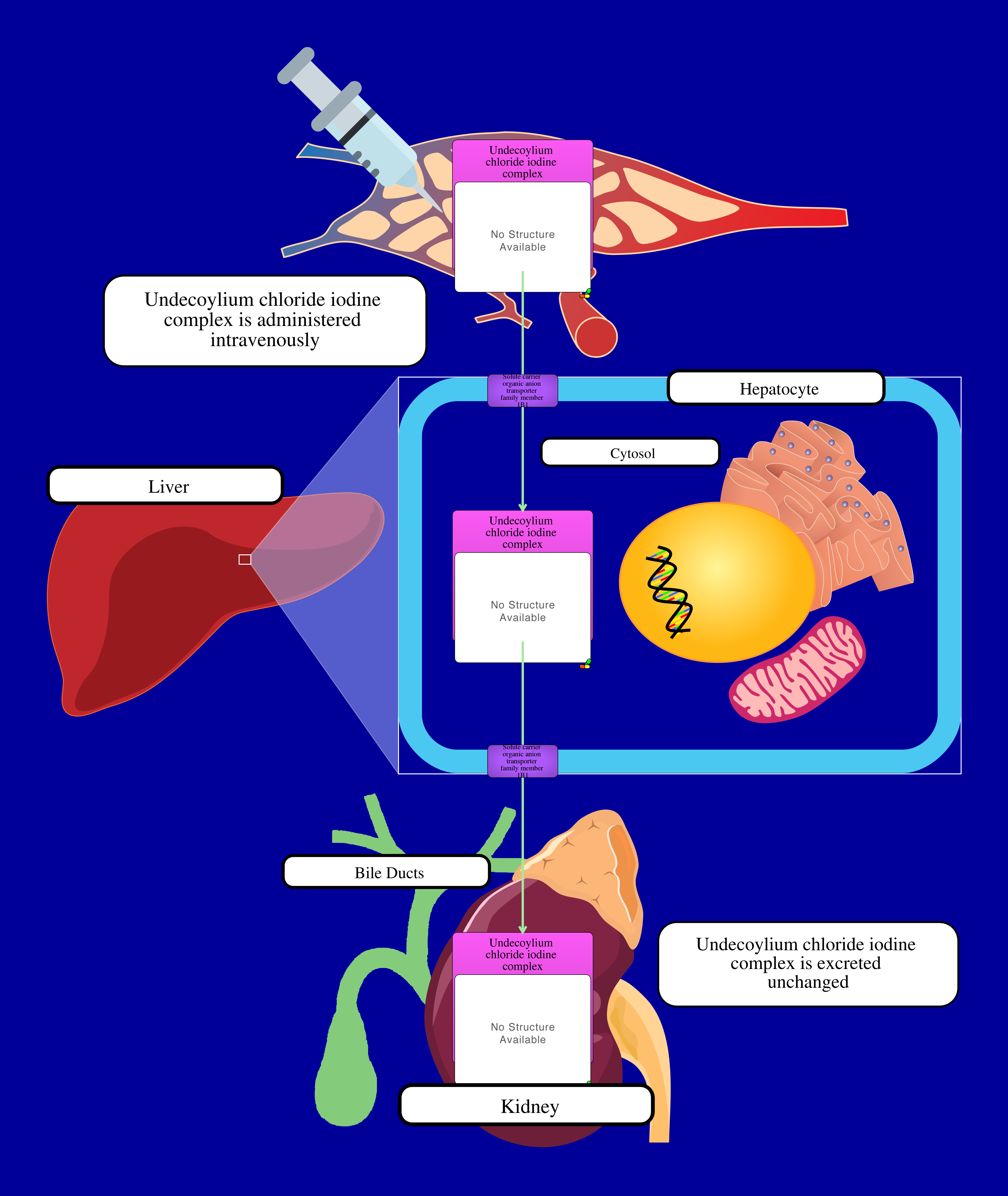 Undecoylium chloride iodine complex is a drug that is not metabolized by the human body as determined by current research and biotransformer analysis. Undecoylium chloride iodine complex passes through the liver and is then excreted from the body mainly through the kidney.