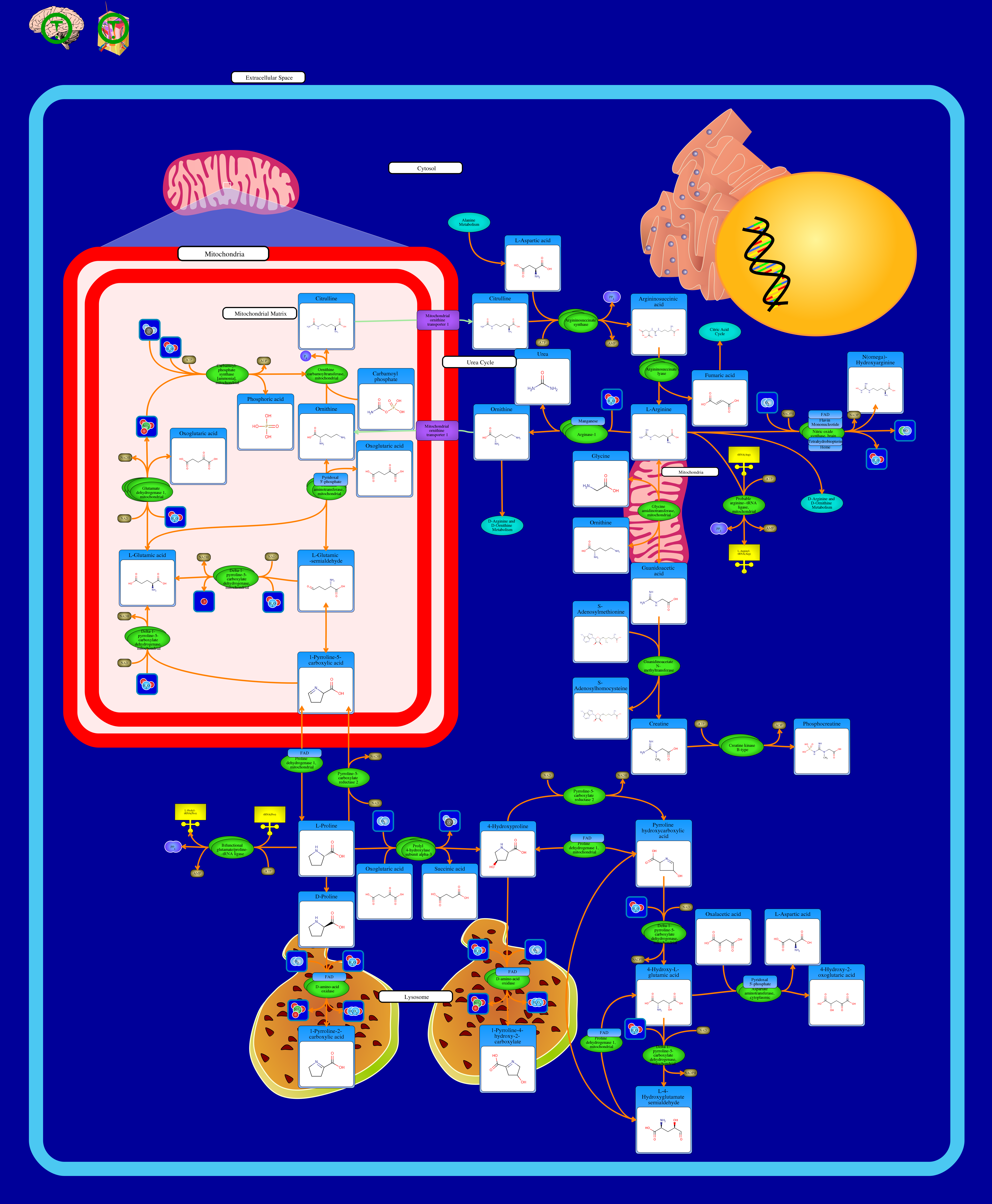 Enter relative concentration values (without units). Elements will be highlighted in a color gradient where red = lowest concentration and green = highest concentration. For the best results, view the pathway in Black and White.