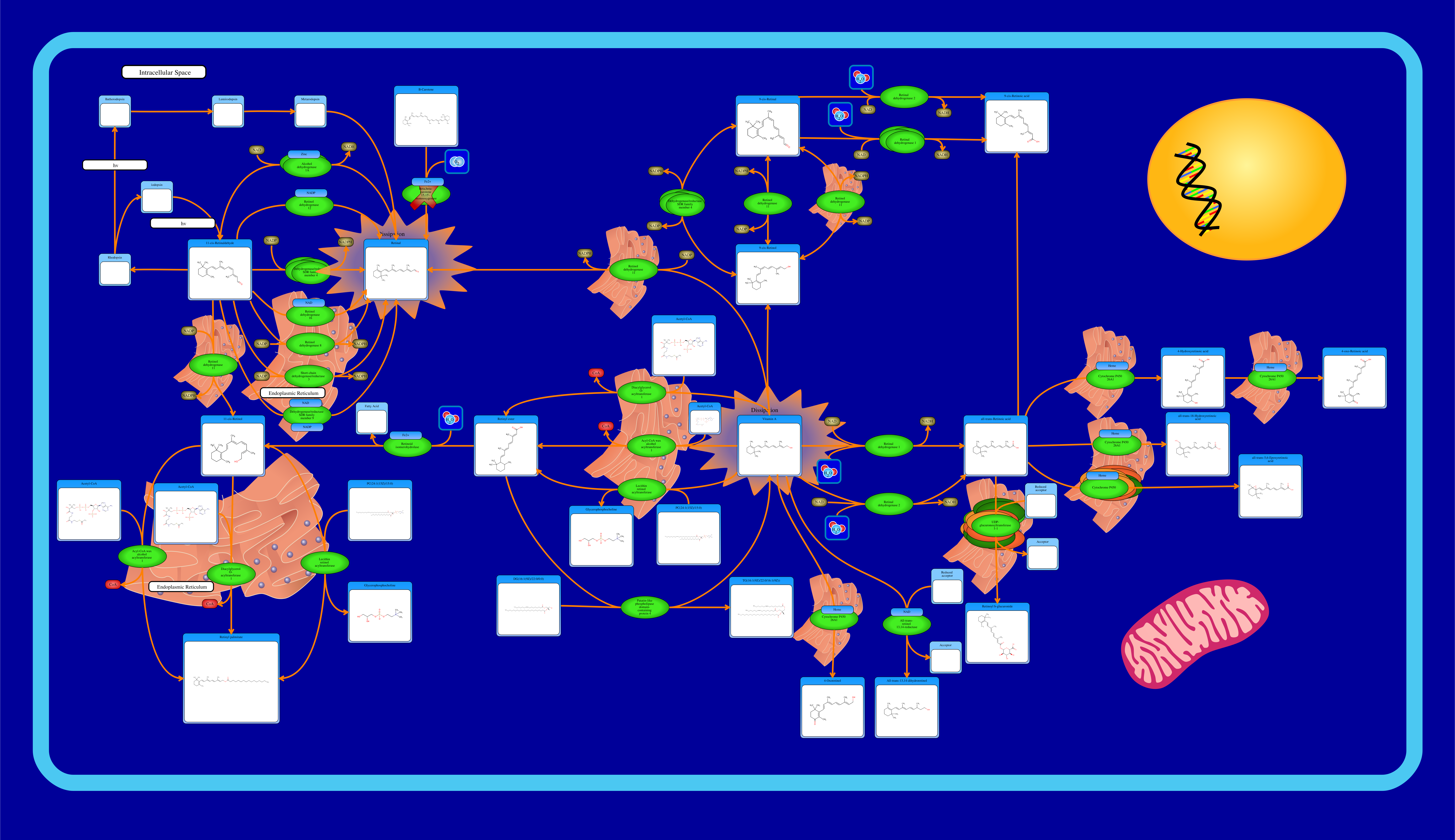 Enter relative concentration values (without units). Elements will be highlighted in a color gradient where red = lowest concentration and green = highest concentration. For the best results, view the pathway in Black and White.