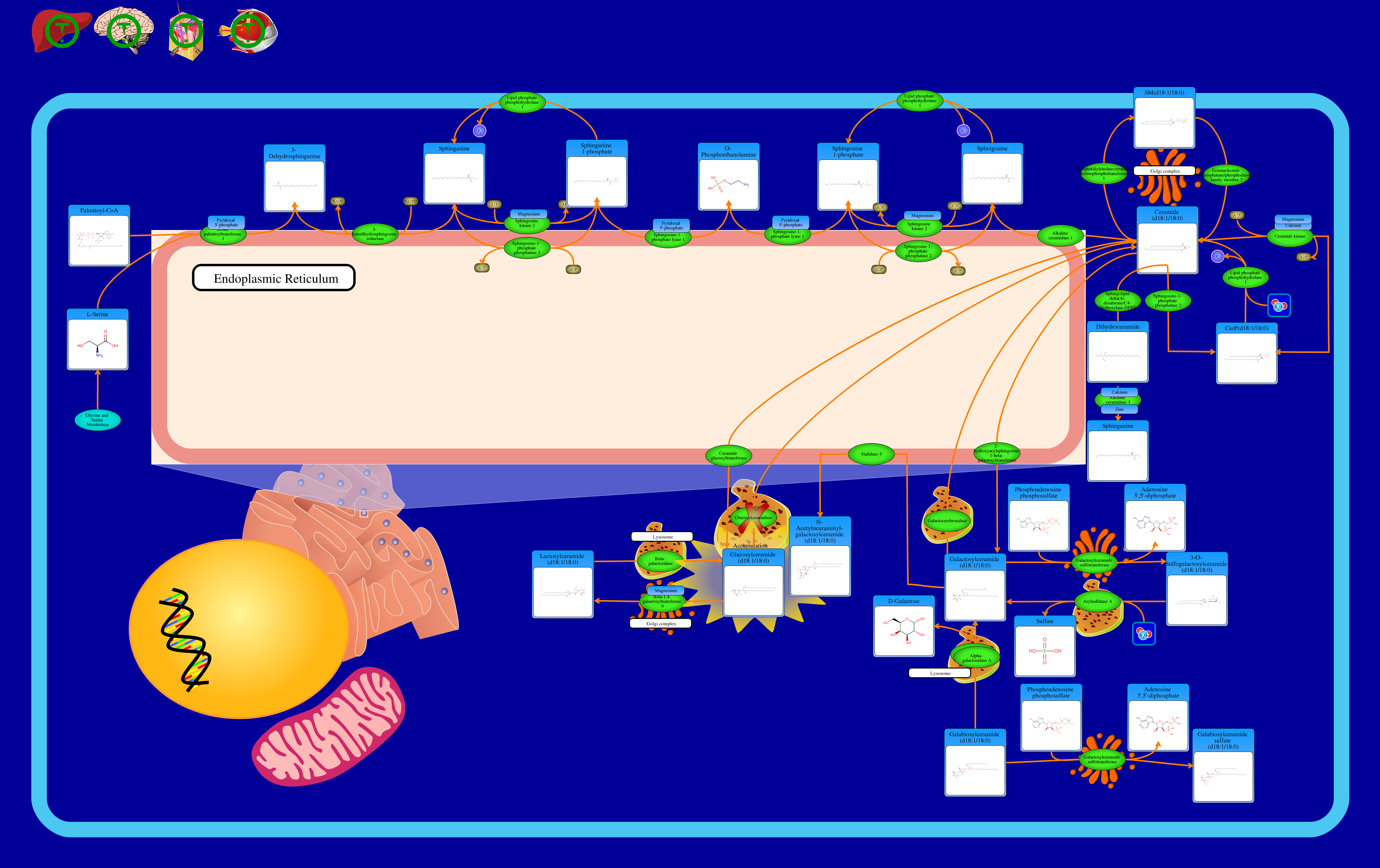 SPTLC2 SPTLC1 KDSR SPHK2 SGPP2 PPAP2A SGPL1 DEGS2 SGPL1 SPHK2 SGPP2 PPAP2A ACER1 SGMS1 ENPP7 UGT8 GALC UGCG GLB1 B4GALT6 GAL3ST1 ARSA GLA NEU3 ACER3 PPAP2A SGPP2 CERK GAL3ST1 GBA Ser COA16:0 3-DHPG d18:0 NADPH NADP ATP ADP Sphg-1P ADP ATP Pi Ethamp DHCeram Ceram18 S1P Sphingo ATP ADP ADP ATP Pi Sphingo Galacto Accumulation Glucosy Lacto18 Paps 3OSs A3'5'PP H2O SO4 D-Gal Galabio NAG d18:0 CerP18 H2O Pi ATP ADP Paps A3'5'PP GalacSO Pyr-5'P Mg2+ Pyr-5'P Pyr-5'P Mg2+ Mg2+ Ca2+ Mg2+ PW000157 Zinc Ca2+ Endoplasmic Reticulum Golgi complex Golgi complex Lysosome Lysosome