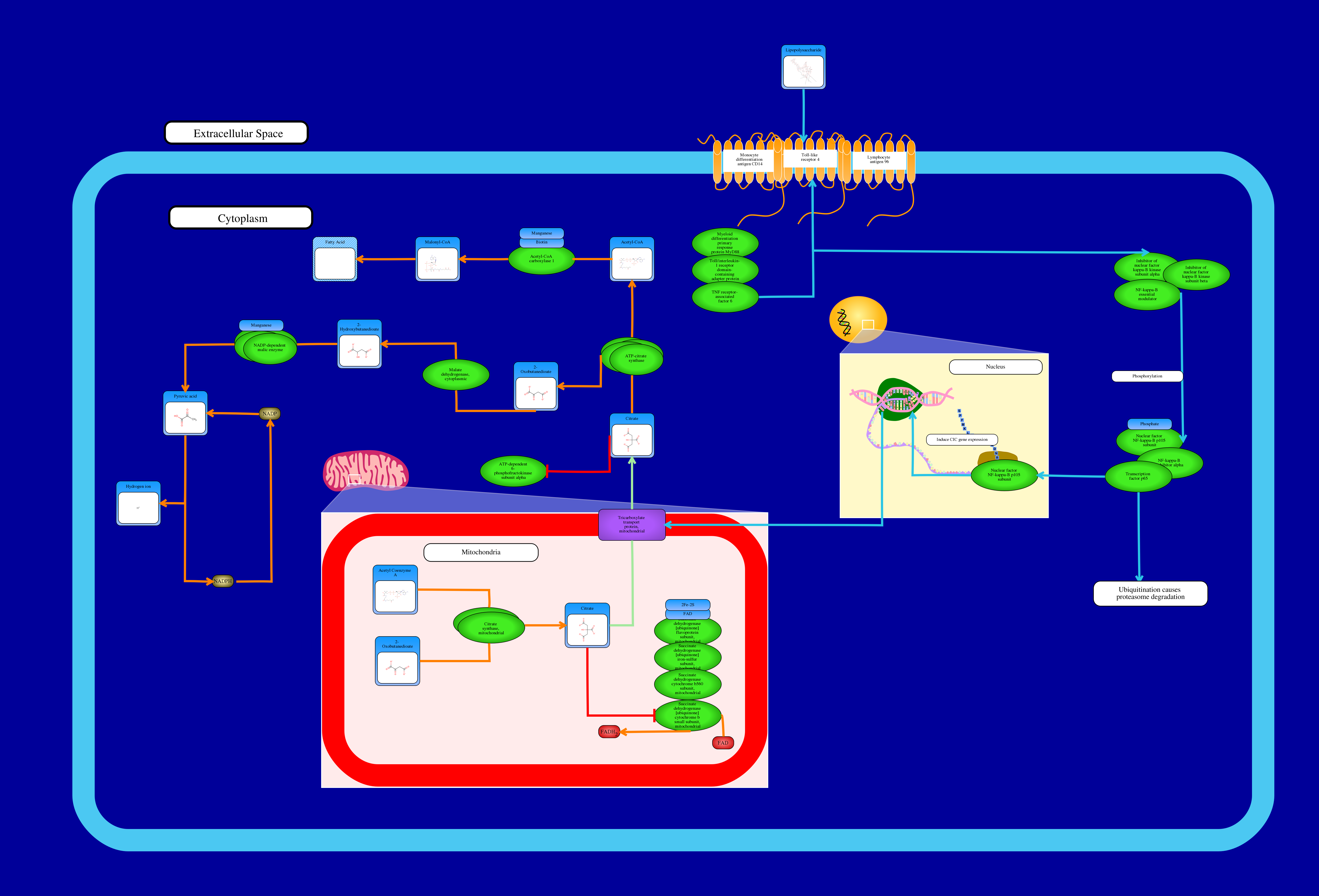 PFK1 SDHA SDHB SDHC SDHD CD14 TLR4 LY96 CHUK IKBKB IKBKG NFKB1 NFKBIA RELA NFKB1 SLC25A1 CS ACLY ACACA MDH1 ME1 MYD88 TIRAP TRAF6 Citrate Citrate Lipopol ACoA 2Oxobd FAD FADH2 Ac-CoA MalyCoA 2Oxobd 2Hb Pyr NADPH HI NADP FAD 2Fe2S Phos Biotin Mn2+ Mn2+ FA Phosphorylation Induce CIC gene expression Ubiquitination causes proteasome degradation Extracellular Space Cytoplasm Mitochondria Nucleus